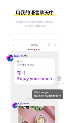 为了深化这份独特的羁绊,bubble 特别为你和每一位艺人记录下专属的纪念日,从你们相遇的那一刻起,共同标记每一个值得庆祝、充满回忆的时刻。无论你身处世界的哪个角落,使用何种语言,我们的智能翻译功能都能确保你轻松理解艺人的每一句话语,并让你用最舒适的母语直接回复。语言不再是沟通的障碍,而是连接彼此心灵的桥梁,让你与偶像的心无间距离,感受彼此的真实存在。