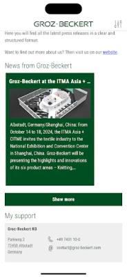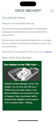 欢迎探索格罗茨-贝克特专属数字平台,一个连接您与全球纺织行业前沿创新的枢纽。作为工业用针、精密部件、工具与服务领域的全球领跑者,格罗茨-贝克特始终致力于推动纺织品生产与接合技术的进步。此应用旨在为您开启通往其专业知识宝库的大门,提供全面的洞察与解决方案,助力您在不断发展的纺织世界中保持领先。