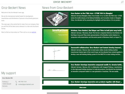 格罗茨-贝克特是更广阔的格罗茨-贝克特集团旗下核心成员。格罗茨-贝克特集团在纺织精密工具、工业切割解决方案的研发与制造领域位居全球前列,并为建筑业提供创新型纺织增强材料和复合材料解决方案。集团旗下汇聚了格罗茨-贝克特、TKM和solidian等业界翘楚,业务网络遍及全球150多个国家,拥有众多代表处、生产与销售子公司。通过本应用,您将能够全面领略格罗茨-贝克特及其集团在全球范围内的强大实力与深远影响力。