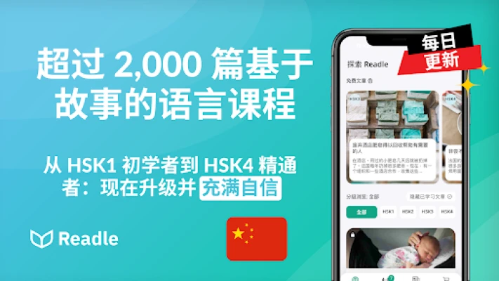 Readle 每日学汉语:HSK 1-4 水平,中文学习助手